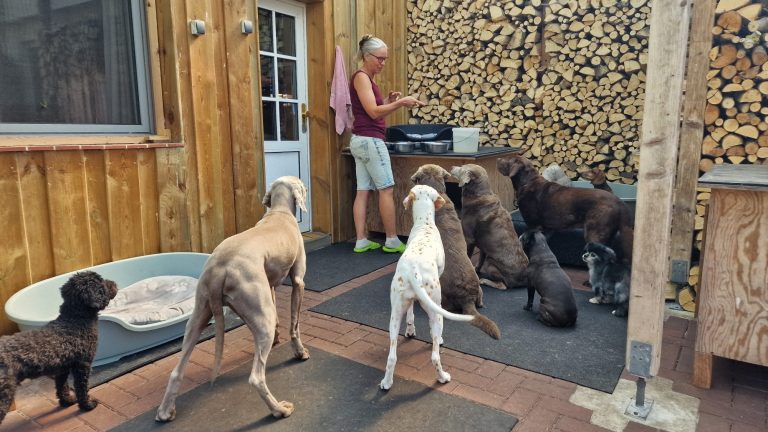 In unserer Hundegruppe erfolgt die Fütterung in ruhiger und strukturierter Atmosphäre. Jeder Hund bekommt sein Futter individuell zugeteilt, sodass Stress und Futterneid vermieden werden. Wir achten darauf, dass alle Tiere ausreichend Abstand haben und entspannt fressen können. Keine Sorge...das klappt seid vielen Jahren auch in der Gruppe :-)
